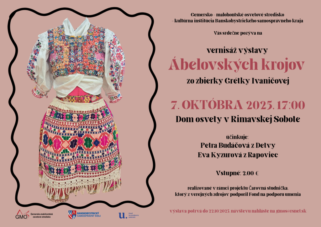 Pozývame na výstavu krojov a krojových súčastí z Ábelovej zo zbierky Grétky Ivaničovej inštalovanú v priestoroch Domu osvety v Rimavskej Sobote.