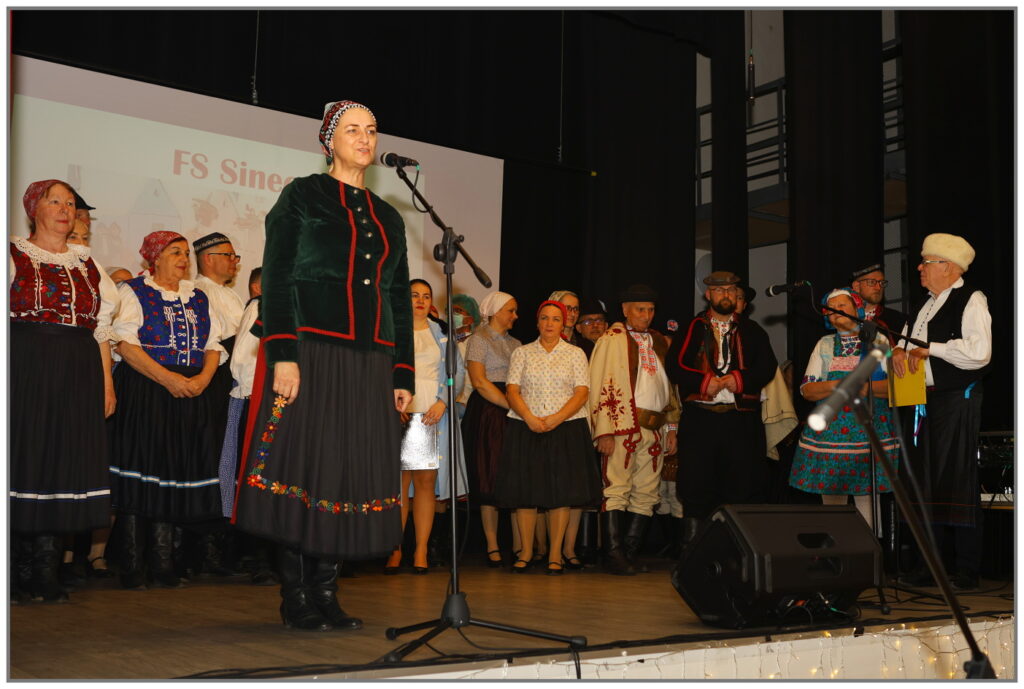 Na pódiu sa postupne predstavili folklórne kolektívy FSK Hráči, FS Sinec, ŽSSk Skaliny, FSK Lieščina a FS Vepor, bratia Slaninovci, programom sprevádzali Mária Kropáčová a Juraj Matias. Vystúpenia zaujali autentickým prejavom, krojmi a energiou, ktorá sa preniesla aj do hľadiska. Publikum odmenilo účinkujúcich srdečným potleskom a celý večer sa niesol v duchu radosti, spolupatričnosti a úcty k ľudovým tradíciám. Scenár a réžia boli v rukách Lucie Zvarovej.