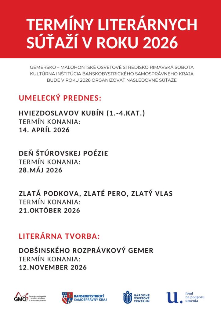 Gemersko - malohontské osvetové stredisko Rimavská Sobota, kultúrna inštitúcia Banskobystrického samosprávneho kraja bude v roku 2026 organizovať nasledovné súťaže: