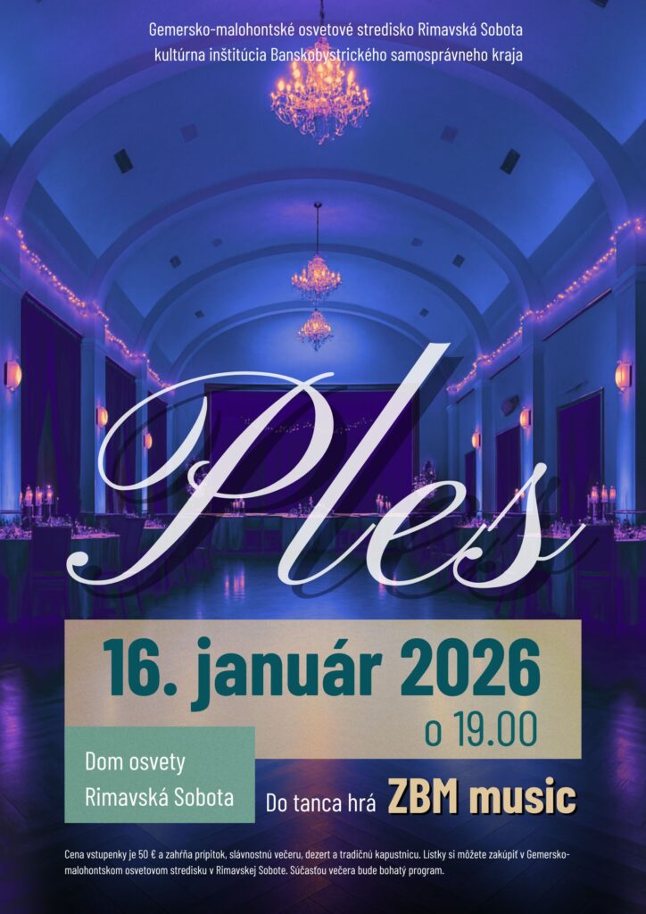 s radosťou vás pozývame na Ples, ktorý pripravuje Gemersko-malohontské osvetové stredisko v Rimavskej Sobote. Príďte si užiť večer plný hudby, tanca a príjemných stretnutí v priateľskej atmosfére.