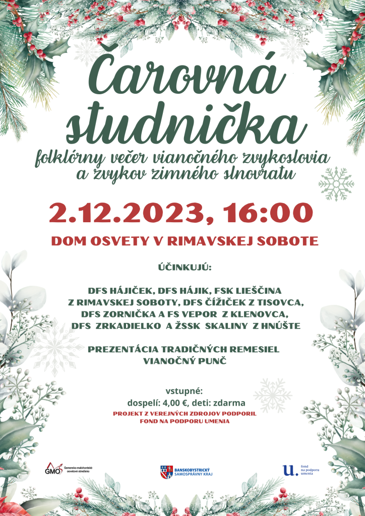 Gemersko – malohontské osvetové stredisko v Rimavskej Sobote, kultúrna inštitúcia Banskobystrického samosprávneho kraja Vás srdečne pozýva 2. decembra 2023, od 16:00